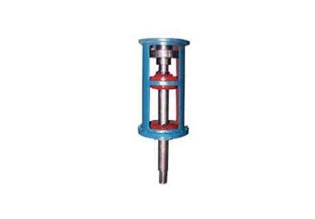 J-B型:用于立式減速機的出軸為Ⅱ型,聯軸器型式為HL型或GT型聯軸器。該機架帶中間支承,適用于攪拌器傳來的軸向較大時使用,當選用HL型聯軸器時,攪拌軸必須在反應器內或填料箱中設有支承若選用夾殼型軸頭,為民避免超定位,建議選用JQW型無懸吊環的夾殼聯軸器。